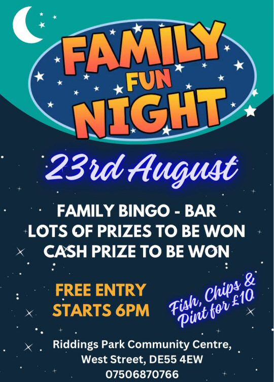 We can not wait to bring the community of Riddings a family Fun Evening