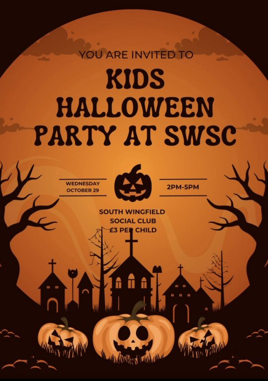 You are invited to a kids Halloween Party at South Wingfield Social Club
