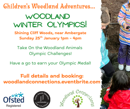 Join us for a fun filled afternoon of Woodland challenges inspired by the Winter Olympics but with a silly nature-themed twist! Children can take on activities like Squirrel''s Acorn Relay, the Deer Long Jump and Foxes Den Dash. The focus is on having fun. keeping active and warm and enjoying the winter woodland together. We will share a warming hot cholcolate and children can make their own woodland olympic medal to take home. This session is aimed at 5-9 year olds. (Over 5 years only, but upper age limit is flexible.)