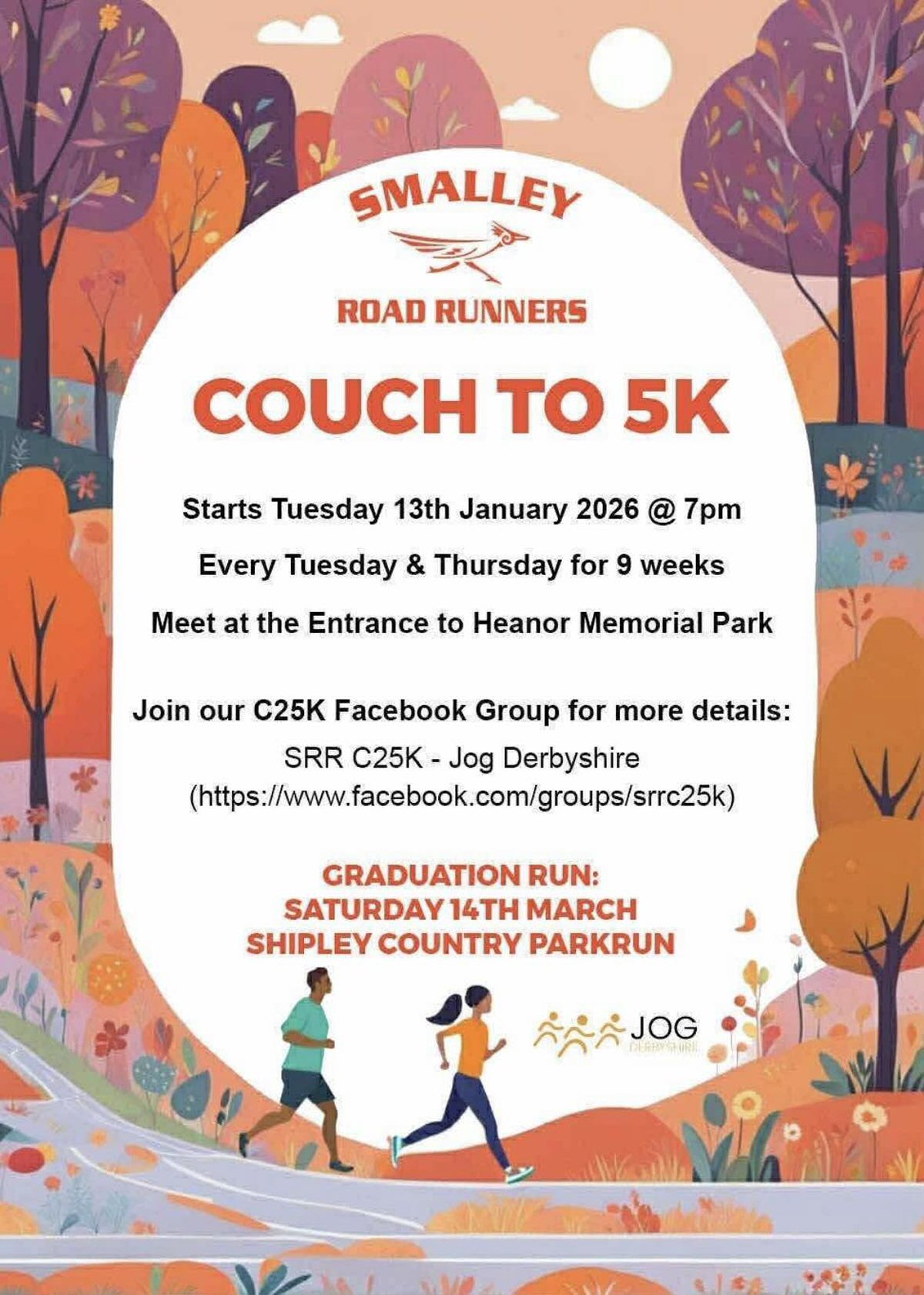 Smalley Road Runners Couch to 5K sessions start on 13th January.