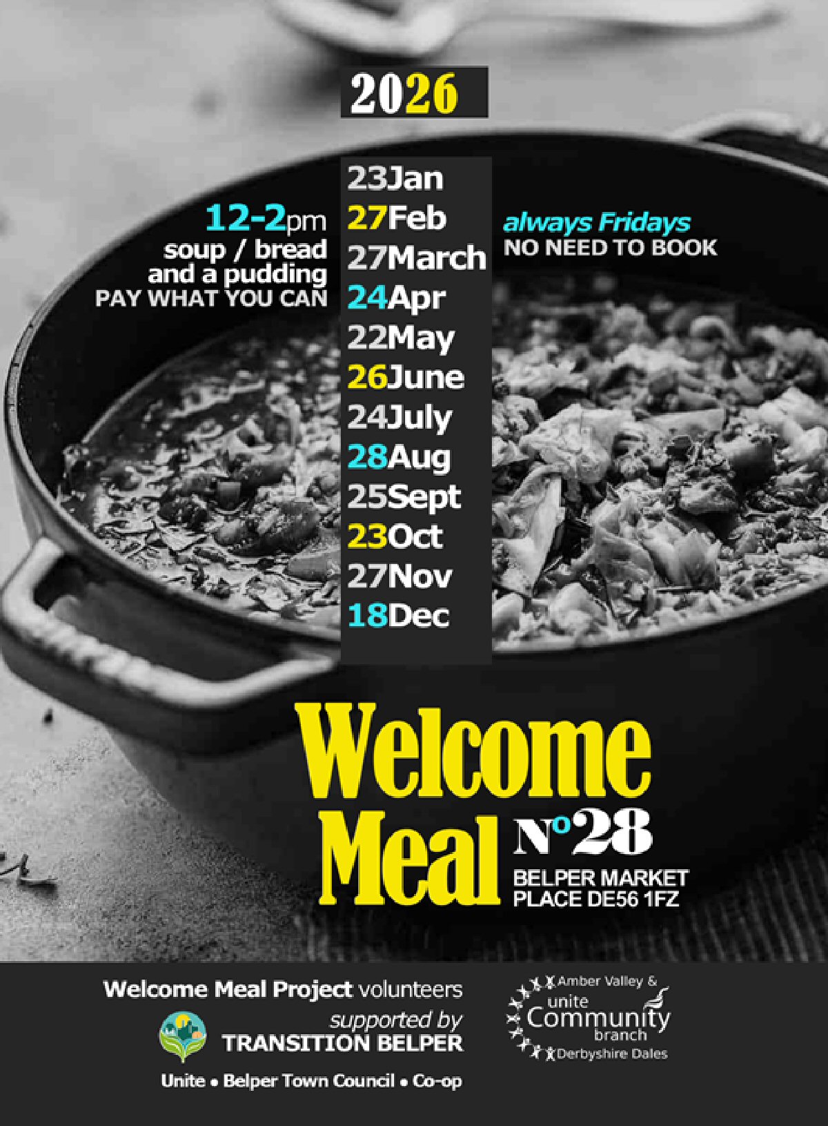 Welcome Meal Project supported by Unite, Belper Town Council, Co-Op