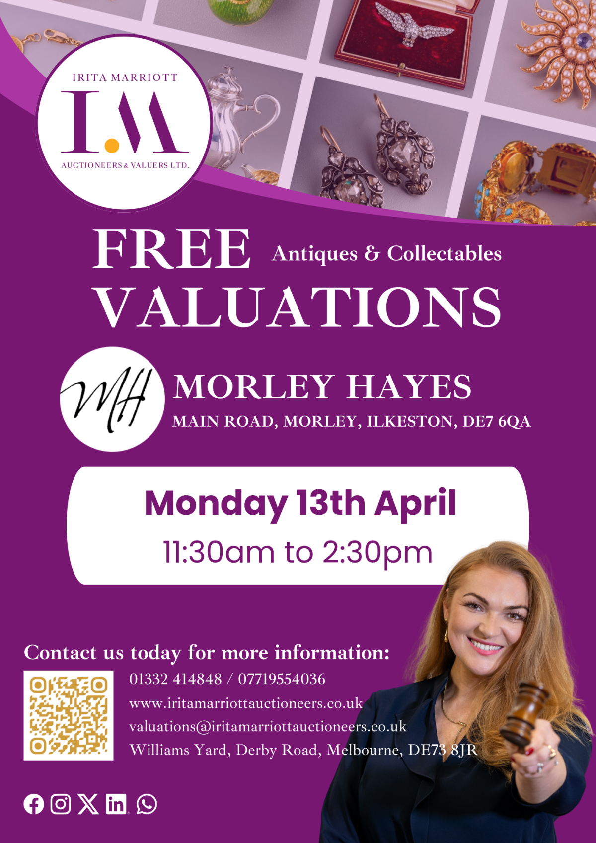 Irita Marriott Auctioneers & Valuers will be returning to Morley Hayes for a free valuation event.