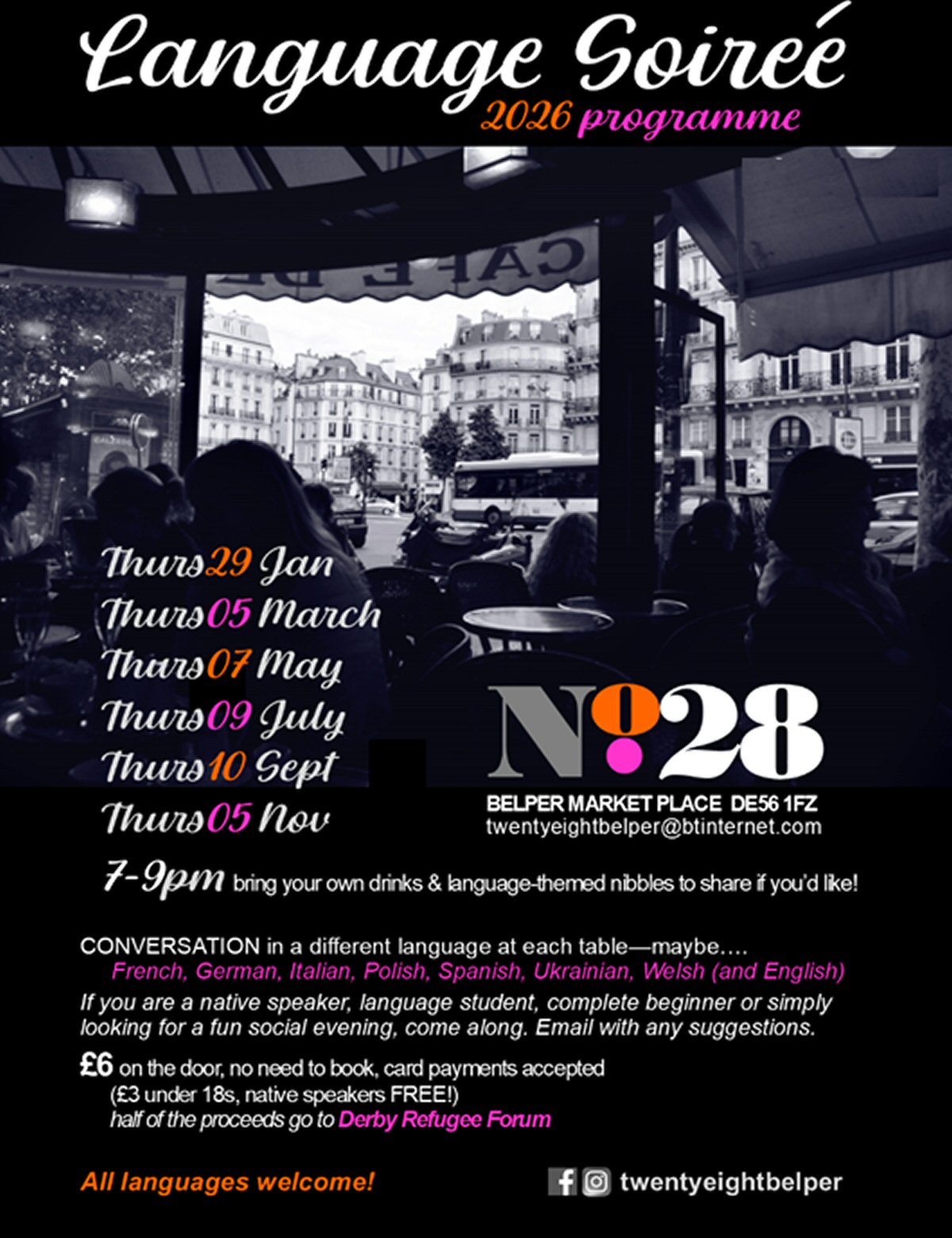 Language Soiree returns! Just turn up and pay at the door.
